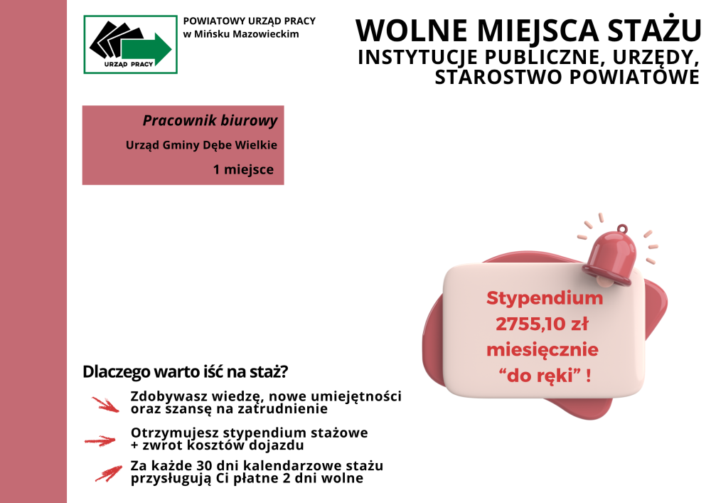Aktualizacja - ostatnie wolne miejsca stażowe! - Powiatowy Urząd Pracy w Mińsku Mazowieckim